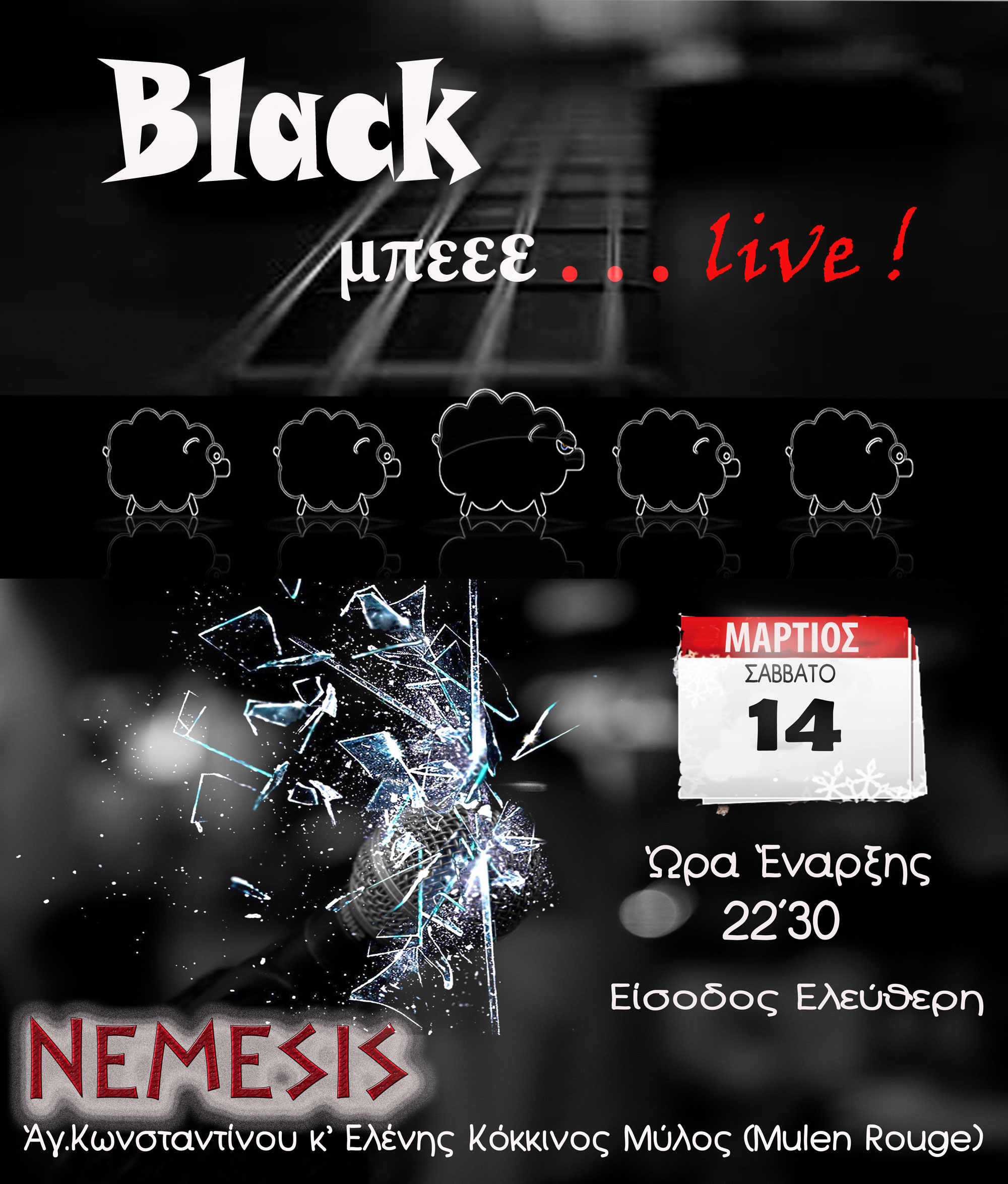 Οι Black Μπεεε liveάρουν αυτό το Σάββατο στο αγαπημένο τους στέκι Nemesis cafe bar….!! Και επειδή χρειαζόμαστε την αγάπη και την ενέργειά σας, be there….!!!! μπεεε